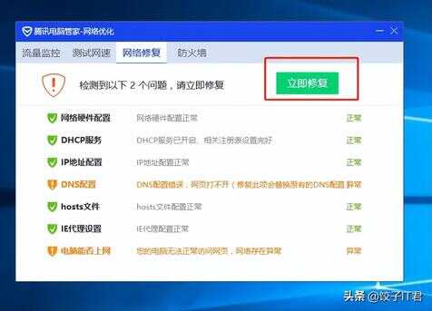 等检测结束后点击立即修复即可。快去看看,网络恢复了呢