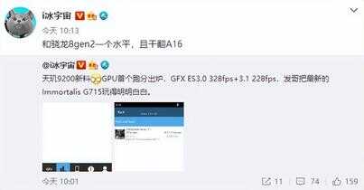 根据爆料,天玑9200依然采用台积电4nm工艺制程,CPU架构是1个Cortex-X3大核、3个Cortex-A715中核和4个Cortex-A510小核,最高主频3.05GHz,GPU则集成Mali Immortalis G-715 MC11。
