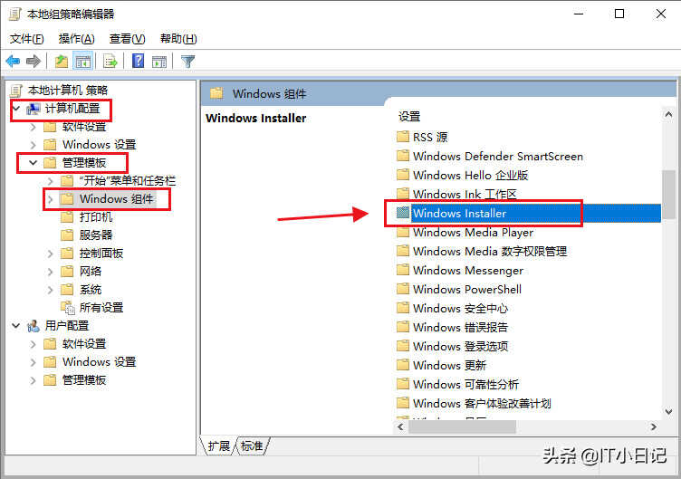 1、电脑左下角开始右键打开运行,或者Win+R键打开运行,输入gpedit.msc,打开组策略编辑器,计算机配置》管理模板》Windows组件》右边“windows installer”双击打开