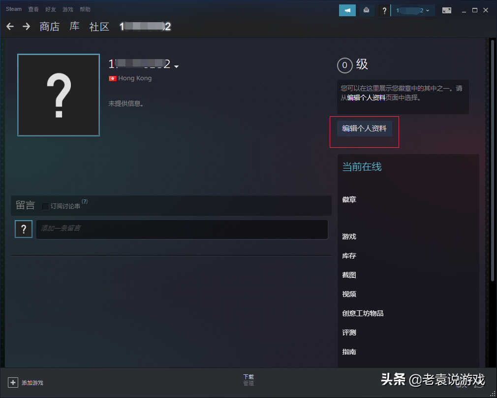 当页面跳转到如下图,玩家点击右侧“编辑个人资料”。