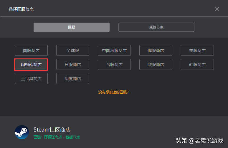 玩家先打开奇游加速工具,点击steam社区商店,试用:https://www.qiyou.cn/specials/general?cid=961加速阿根廷地区,毕竟是外区,所以需要加速一下阿根廷地区的网络。