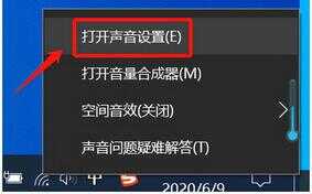 7.在右下音量图标上点击鼠标右键,选择打开声音设置。