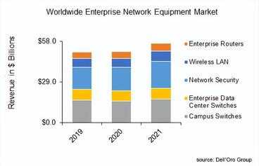 按柱状图的比例粗算一下,交换机(240+亿)、安全(190+亿)、WLAN(70+亿)、企业路由器与SDWAN(60+亿),都是美金哦~
