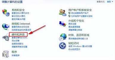 2. 打开“鼠标”属性“类别” 视图下点击“硬件和声音”找到“鼠标”)