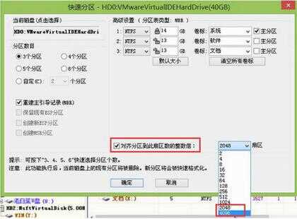 2、进入U启盘界面后选择切换至“第07项”敲回车即入DISKGEN磁盘工具界面,接着点击“快速分区”选项,然后选择要分区的数量,并勾选“对齐分区到此分区的整倍数”,也就是4K对齐设置,最后点击确定即可。