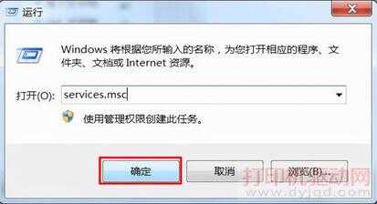 ①、按Win+R键打开运行对话框,然后输入“services.msc ” 并按确认;
