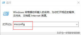 4、进入安全模式后,可以看到下图中的对话框,在对话框中输入:msconfig