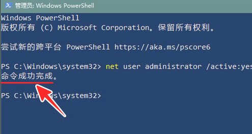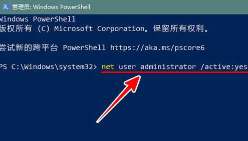 2、接着在打开的窗口中输入这串命令net user administrator /active:yes,然后按回车键