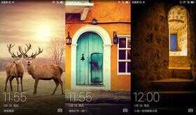 在锁屏界面时,屏幕底部向上滑动可看到相对应的壁纸介绍以及录音、计算器、手电筒、拍照常用快捷键。进入锁屏后,用手机往下拉是菜单快捷键,有两个页面可选,一是时间栏看提醒通知,二在开关栏可以选择WIFI,蓝牙设置等。