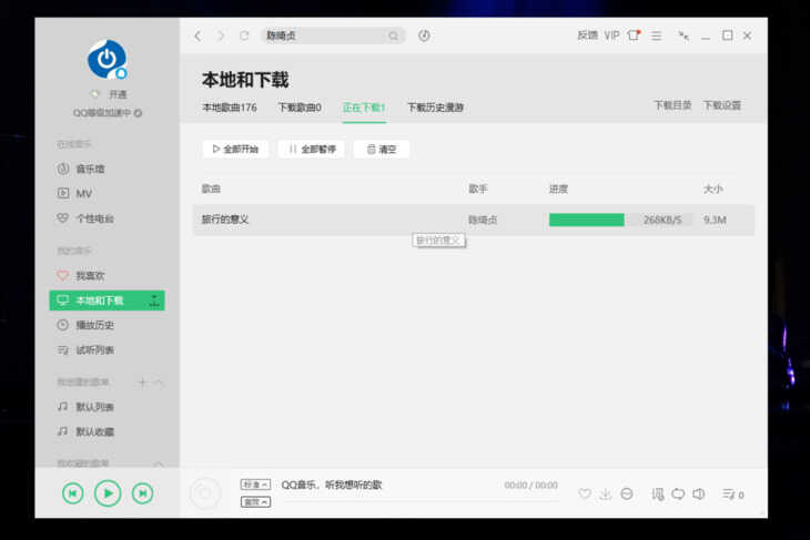第七步:在QQ音乐主界面右侧的“本地和下载”菜单中,查看目标音乐下载进度。