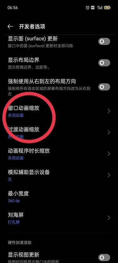 第八步:在开发者选项里找到动画选项,将设置调成最小,关闭窗口动画,关闭过度动画等!