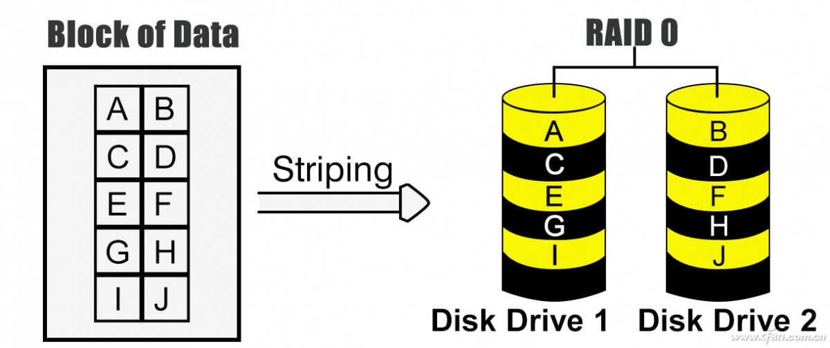 再回头说一说为什么有些人感觉SSD的数据安全性不高吧,这主要是在SSD重大故障后的恢复太过困难而造成的印象。在之前的推送中我们提到过,SSD内部常常是多路并行存储以提升效率的,这有点像RAID模式,大家知道追求高速、并行存取的RAID0等模式将数据分拆到两块或多块硬盘中,一旦出故障,即使能恢复数据,整合成完整的文件也很困难。