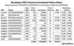 https://www.backblaze.com/blog/ssd-drive-stats-mid-2022-review/),就是那个用消费级硬盘来做存储服务的公司,他们使用的SSD中,最老一批已经达到了很多厂商的质保年限——5年。先看看两个季度的统计。