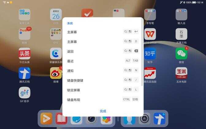 值得一吹的是悬浮键盘上的组合快捷键,能够实现不少快捷操作,比如,快速返回桌面、快速切换上个界面、快速呼出通知等等。别忘了,还有触摸板,三指上划、悬停等也能实现快速返回桌面、呼出多任务界面等快捷操作,真心方便。