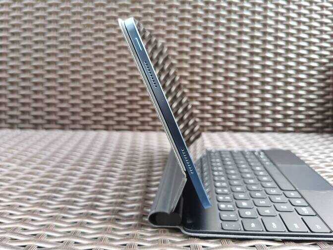 如果带上荣耀Magic悬浮键盘,体重就翻倍了,装在包里稍稍有些沉,不过比笔记本电脑要轻便多了。而且,荣耀V7 Pro的规格设计得也非常合理,比A4纸稍小一些,刚刚好能装进大一些的斜挎包里,携带起来十分方便。