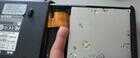 此时放入光盘,假如读盘或写盘还是没有改善的话,那就继续往下看吧。弹出光驱托盘,然后关闭笔记本,把笔记本翻转过来,打开光盘托盘后面光驱组件的盖板。友情提醒,取下的小螺丝要放好,别掉进笔记本里,也不要让利器划伤光驱透镜和排线。