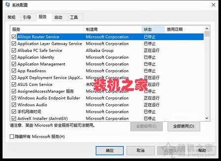 首先我们鼠标右键点击“开始”菜单,再点击“运行”,或者直接快捷键按下“windows键+R键”打开运行,在运行输入“msconfig”,点击确定按钮,点击“服务”选项卡,点击全部启用,最后点击应用确定即可,重启电脑。