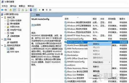 关于WLAN无线网络的服务没有开启,在服务中开启一下。具体方法:鼠标右键点击“此电脑”,选择“管理”,在计算机管理中找到并点击进入“服务和应用程序”,选择“服务”,找到WLAN AutoConfig、WLAN Direct以及Network Setup Service,查看是否正在运行、开启该服务,如果没有的话,左键该服务选择启动即可。