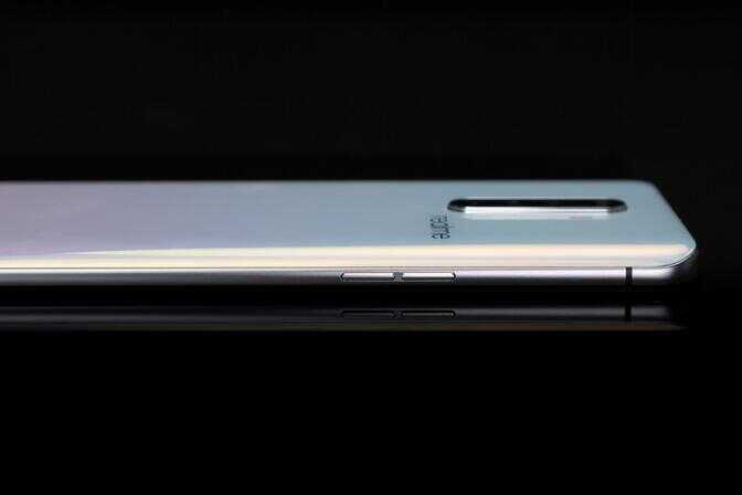 屏幕是这台机器的一大亮点,搭载一块 6.5 英寸 Super AMOLED 屏幕 90Hz 刷新率“流体屏”,使用全新的 E3 发光材质,可以减少 37.5% 有害蓝光,这块屏幕还通过了德国莱茵全局护眼认证。2400 x 1080 分辨率,比例有点奇怪,20:9,比目前主流的 19.5:9 还要长一些。