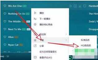 第二步:请右击该歌曲,依次点击【下载】和【HQ高品质】。