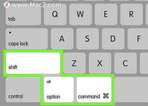 5、同时按住键盘组合键⌘ Command,⌥ Option和⇧ Shift所有在同一时间键,按住“电源”按钮。
