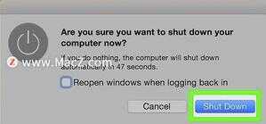 7、按下“电源”按钮。打开Mac,提示其开始重新启动。Mac完成重新启动后,电池问题即可得到解决。