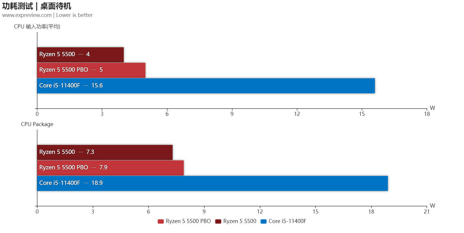 我们把这次的测试数据导入到CPU天梯榜里面,可见锐龙5 5500的基准性能是在酷睿i5-11400F之上的,而游戏性能两者基本不相上下,锐龙5 5500在部分网游里面有一定优势,而且锐龙5 5500有着功耗上的优势,此外它还可以开启PBO功能,进一步提升自身的性能,当然如果想获得较大幅度的提升,还是得靠手动超频,因为开启PBO后锐龙5 5500的频率也不算高。