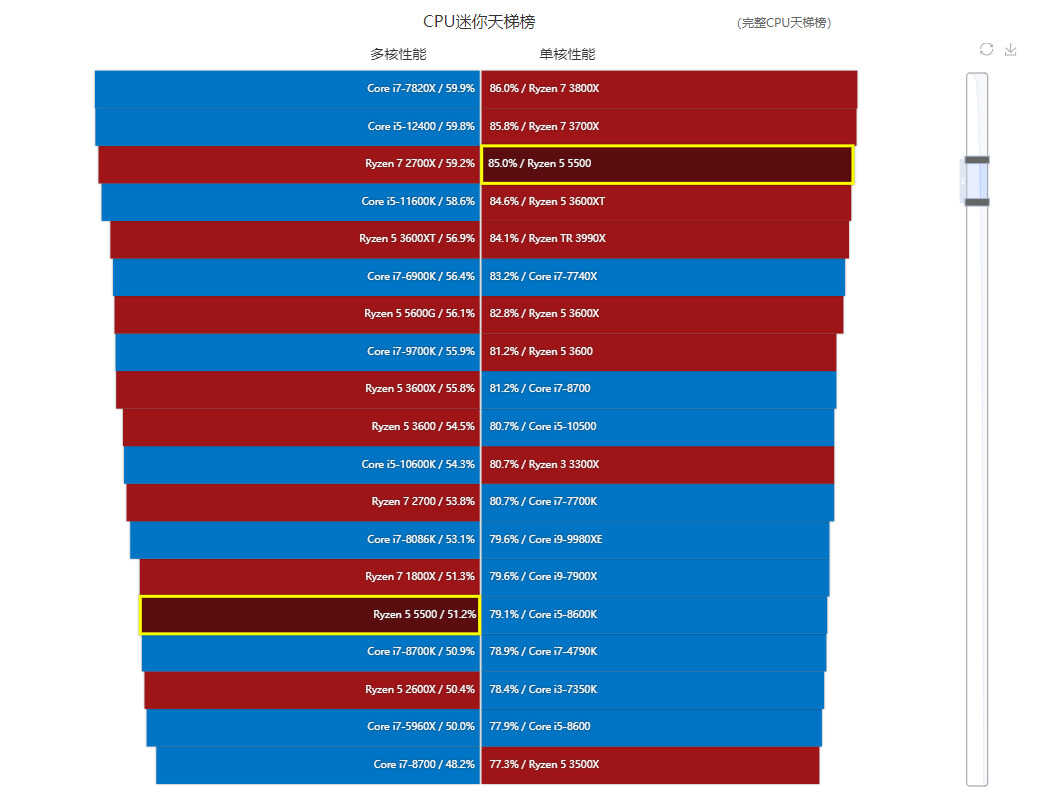 CPU迷你天梯榜