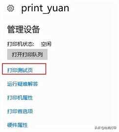 三、接着你就可以看到“打印测试页”的选项了,单击进入即可开始打印。