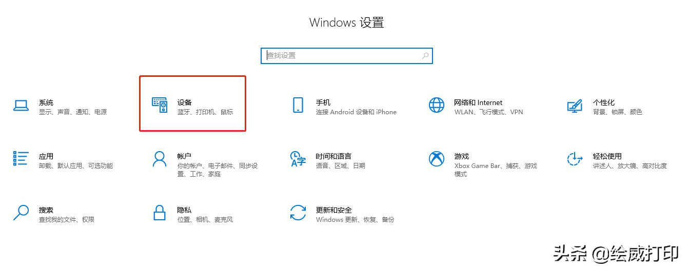 一、首先我们打开计算机设置页面,选择“设备与打印机”。