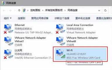 3、找到电脑选择使用的网卡,如果电脑连接了网线,网卡名称一般为【本地连接】或者【以太网】,如使用的WiFi,则选择【WiFi】或者【WLAN】;