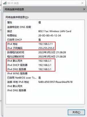 4、鼠标双击对应的网卡,会显示出网络IP地址,网关地址,DNS地址信息等;