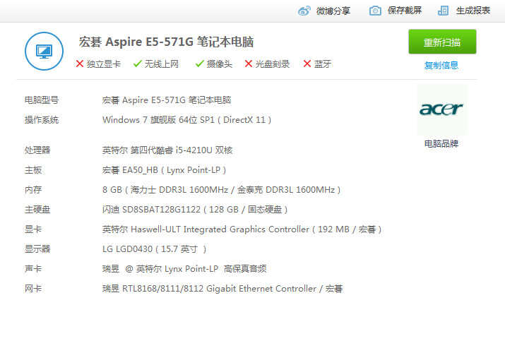 我的笔记本电脑是宏基的,最近一段时间发现: