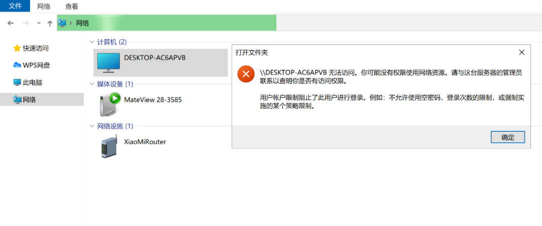 但如果你是第一次使用,访问目标计算机上面分享的文件时,会弹出下面这个没有权限的提示。
