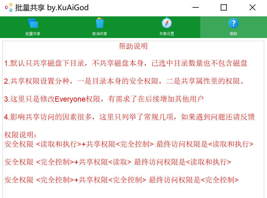 软件帮助界面里有关于分享的一些解释,大家感兴趣的话可以认真看一下。