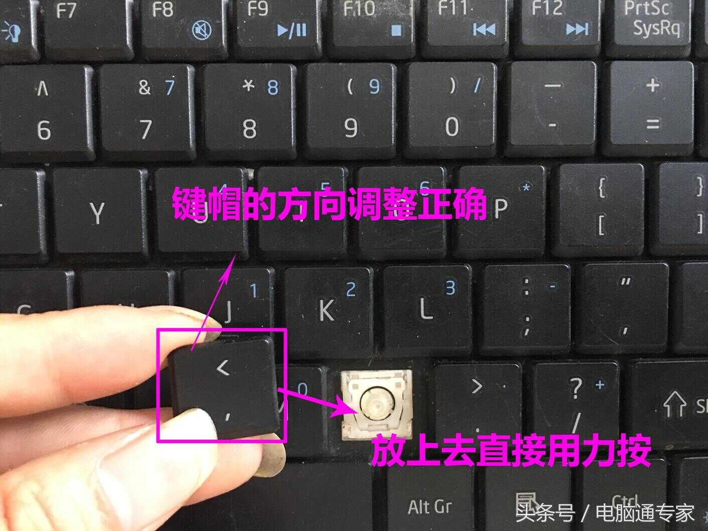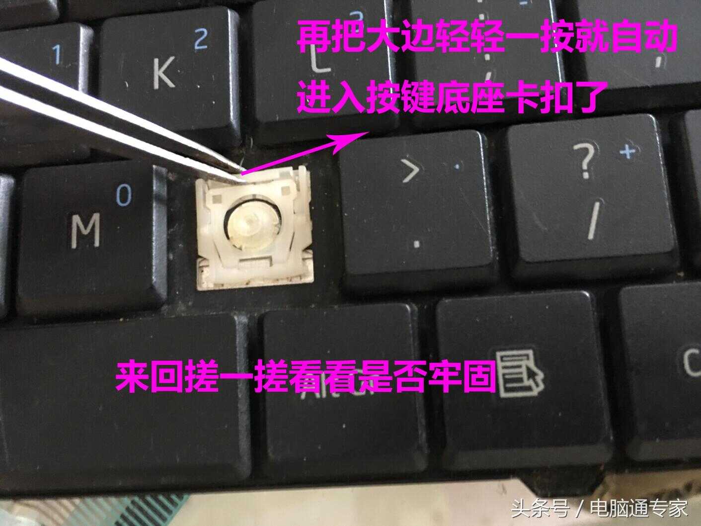 我们平时总有不小心把键盘上面的键帽抠下来了,但是就是不知道怎么安装上去,那么,今天小编就教你如何把抠下来的按键和键帽再安装回去。大家在操作的时候心细一些就可以了,不要太暴力。非常简单就是活比较细。以后大家在拆机的过程中抠键盘的时候慢一些,还有在给键盘上面做清灰的时候力度要注意一点,不然可能随手一下去掉下来的就是几个键盘按键了。好的,小编开始上图讲解了,闲话不多说了哈。