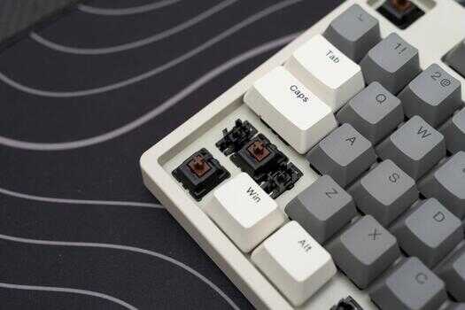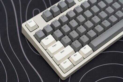 回到键盘本身,原配主要是灰白组合,输入区是灰色,像QWER、数字、F区部分等等,功能区是白色,像ESC、Tab、Shift、Ctrl、Win、Alt。