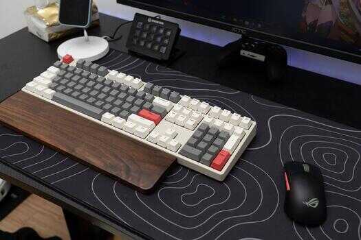 ikbc除了不少系列,经典、轻薄、主题、联名等等,时光灰归到了主题系列,其实从介绍上看就像是蒸汽时代的工业气息,尤其是红色键帽换上之后尤其明显,不过原配没用上红色我是没想到的。使用来看的话,整体体验不错,108键增加了4个快速调节的按键,也有组合键的支持,可以实现播放/暂停、上一首、下一首等控制,所以功能性不错,无线连接简化桌面。