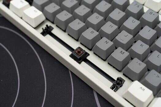 轴体部分使用的是cherry的MX轴,老cherry了,茶轴的手感不用多说,有段落感,相比青轴,更安静一些,打字、游戏都有不错的体验。最近樱桃轴的口风一般,不过在这款上面没有发现什么异常,还是挺爽的。大键都是卫星轴,空格的两侧卫星轴分得很开,覆盖了整个键帽,所以空格也不会左右翘,按起来手感可以。