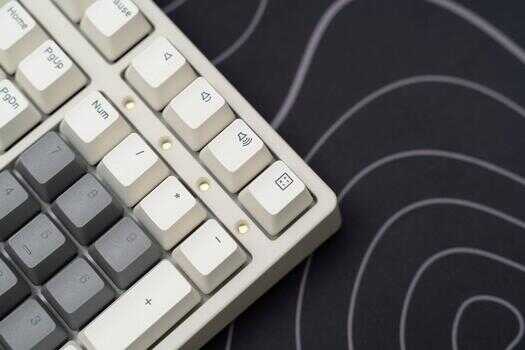 108键相比104键多了4颗按键,布局在右上角,音量的调节靠这个完成,静音、音量-、音量+,还有计算器,底下有4颗指示灯,从左往右Numlock,锁小键盘数字、大小写切换、