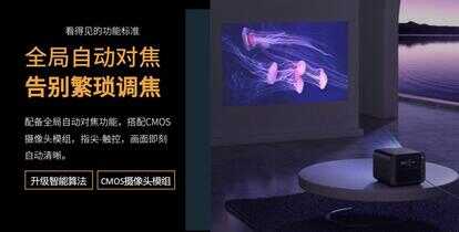 自动对焦:顾名思义是不需要手动去调节画面的清晰度的,当投影仪移动位置或其他情况导致画面不清晰,打开投影仪的自动对焦功能后画面开始自动调节清晰度,直至画面清晰。操作比较方便,也很智能化。为了实现自动对焦,部分机型采用了双镜头自动对焦,来实现更为精准的对焦结果。目前的投影机全自动对焦功能主要有三种实现方式,第一种是通过具体的遥控按键实现的遥控器一键对焦,第二种是进入系统UI主页后点击相关应用实现的系统一键对焦,第三种是主机机身带有对焦实体按键,可以完成机身按键一键对焦。