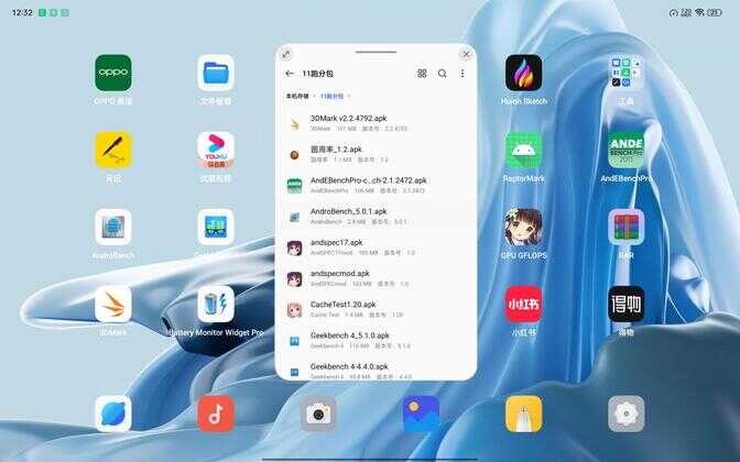 系统是ColorOS For Pad,有很多源自Find N折叠屏手机的功能,如双指下滑分屏和各种大屏优化,其额外还有四指收缩触发浮窗的功能。系统宣称有3000+主流App的大屏适配。