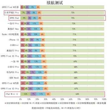 OPPO Pad的8360mAh电池,经30分钟《和平精英》(HDR高清+极限帧数+抗锯齿)、30分钟B站1080P视频播放、30分钟微博短视频、1小时的Wi-Fi冲浪,共2.5小时的续航测试后,剩余电量75%,持平电池容量更大的小米平板5 Pro,远远抛离小电池小屏幕的iPad mini 6。