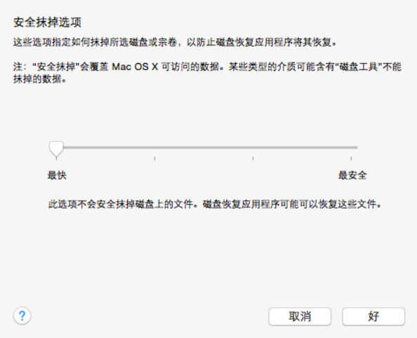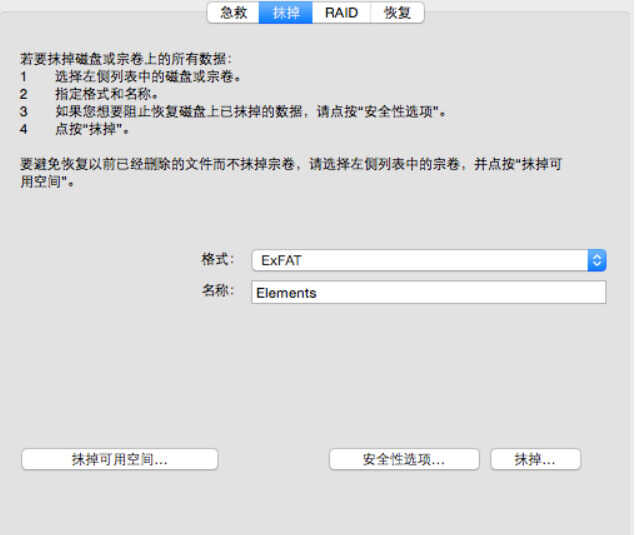 3、操作完上述步骤后,点击抹掉然后等待电脑系统格式化就行了,当然也可以点击安全性选项,在这里可以选择格式化的方式。