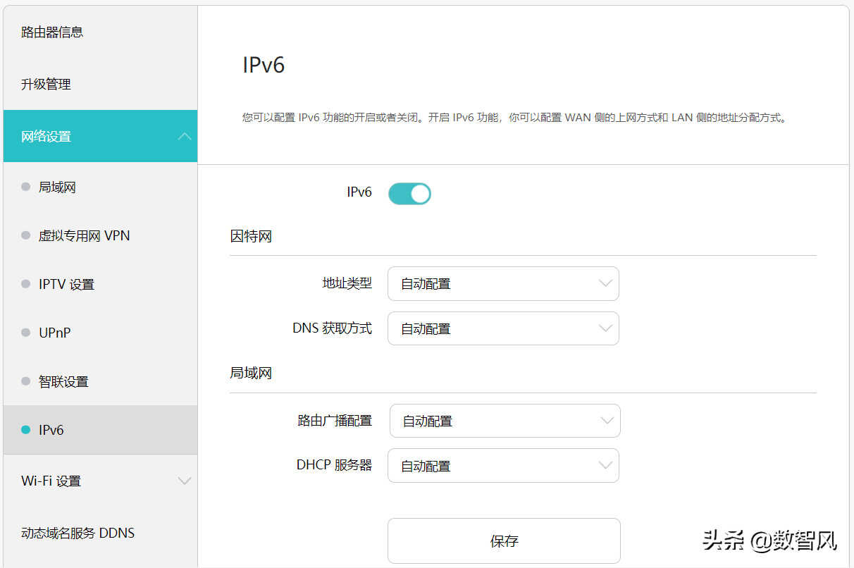 对于路由器而言,家用的一般都有web管理页。我们通过浏览器登录管理界面,找到“网络设置”下的“IPv6”,然后查看是否开启该功能。如果是企业用的大型路由器,建议查看原厂说明书,并按照说明书确认是否开启IPv6支持。