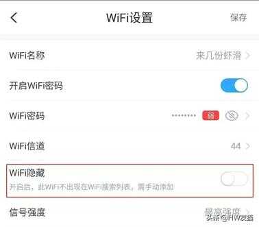 即可看见WIFI隐藏开光,如图内所示,开启后,此WIFI不出现在搜索列表里,需手动添加。