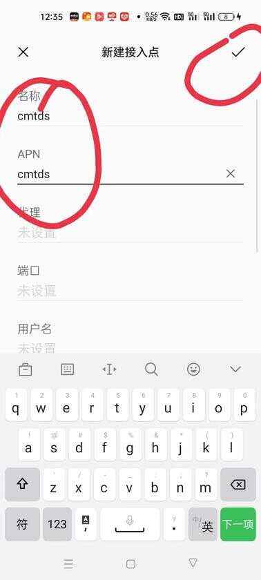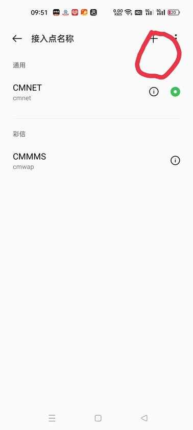 打开手机的设置——无线与网络——移动网络——选择接入点名称——点击右上角的4个小点的地方或者+的地方——选择新建APN——把名称和APN后面的字改为cmtds,点击确定。