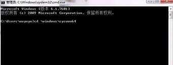 2、在命令提示符里输入“cd \windows\syswow64”,这个命令是将目录设置到syswow64这个文件夹,输入后按enter,如下图所示: