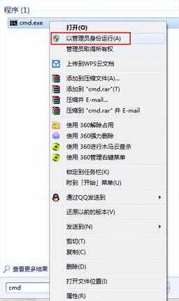 1、打开开始菜单输入cmd,在搜索出的cmd程序右键选择以管理员身份运行,如下图所示:
