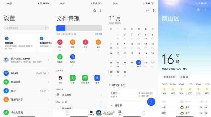 ColorOS 12 界面上比较吸引我的是这个亚克力图标,新的图标将内层元素做成了亚克力半透明材质的质感,相比原先完全扁平化的图标风格,亚克力图标介于扁平与拟物之间,显得更生动更具有立体感。不过当前亚克力图标仅出现在系统应用上,第三方图标并未做相应重绘。